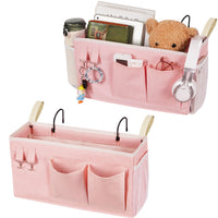Loghot Bedside Caddy/Bedside Storage Bag Hanging Organizer for Bunk and Hospital Beds,Dorm Rooms Bed Rails,Can be Placed Glasses,Books,Mobile Phones,Keys (Light Pink)