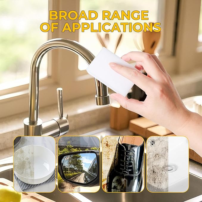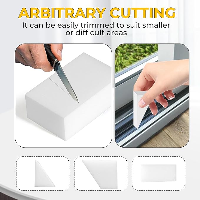 - Versatility: The magic sponge comes in a pack of 50 pieces, each measuring 3.9x2.3x0.8 inches/ 10x6x2 cm. They are suitable for cleaning a variety of surfaces, including kitchen countertops, bathroom tiles, furniture, etc., and can be cut into small pieces of different shapes to meet the needs of different scenes. Soft texture, will not scratch the surface of various materials, protect furniture from damage.